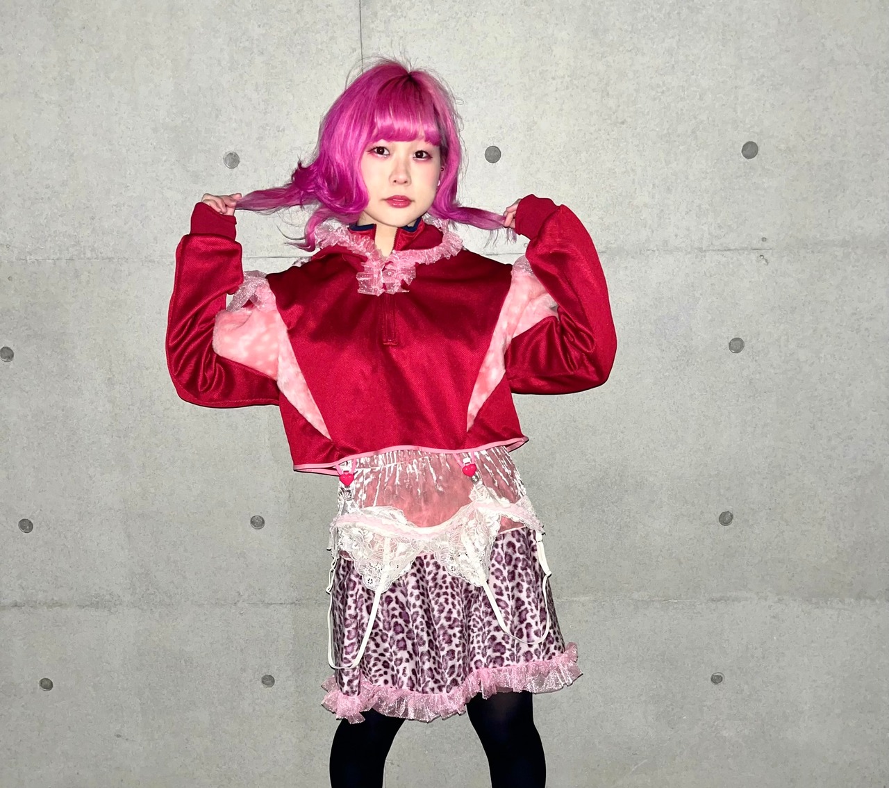 原宿 高円寺 アメ村 サブカル アイドル アニマル アニメ kawaii かわいい うさ耳 猫耳 ジャージリメイク 個性的 ヒョウ柄 pink ピンク ハート おもちゃ カラフル 魔法少女 ゆめかわ ランジェリー フリル レース 衣装 2way