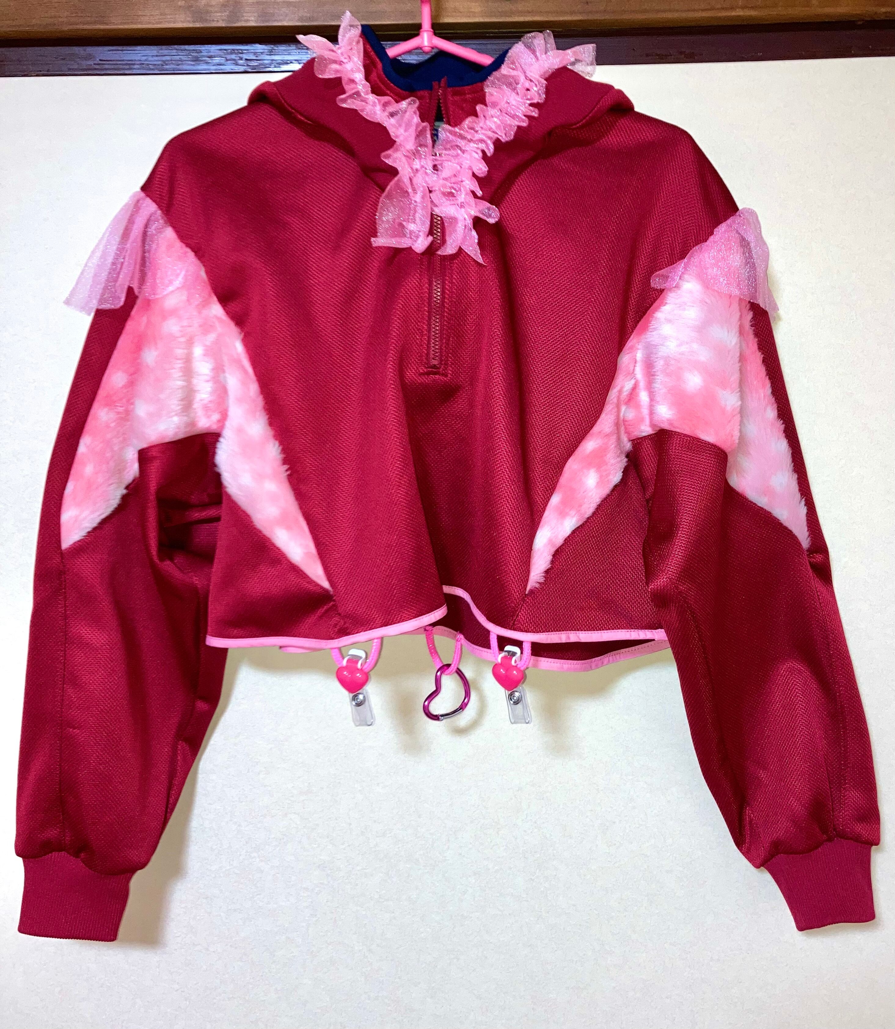 ジャージ裾から作成したフードにハートのお耳が付いてます。